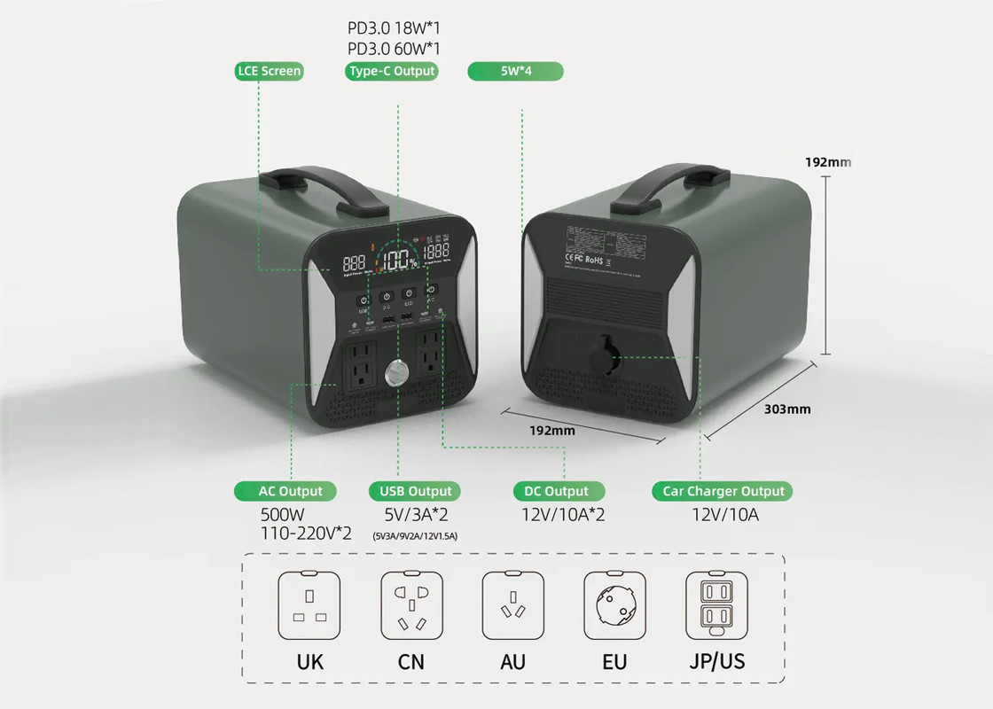 ميزات مصدر الطاقة المحمول Sunpok 500W