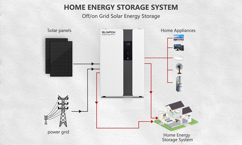 توفر بطارية ESS - SUNPOK المنزلية الكلية في واحد حلًا كاملًا لتخزين الطاقة لمنزلك. تتوفر بطاريات Powerwall لدينا بقدرات مختلفة - 5Kwh ، 7Kwh ، 10Kwh ، 15Kwh ، و 20Kwh.